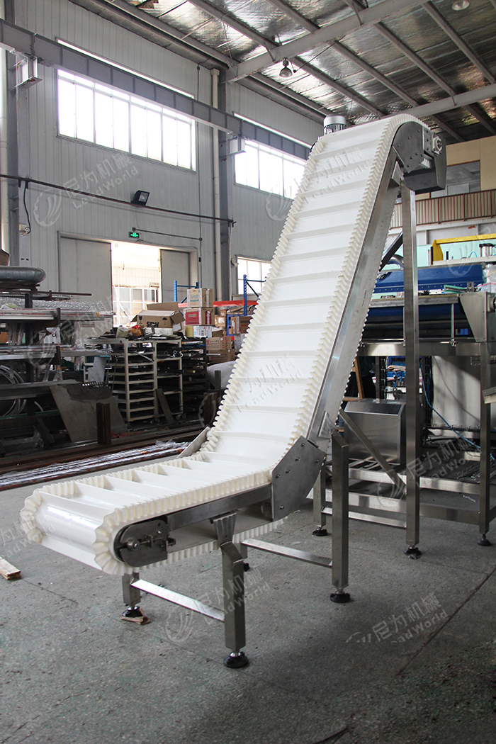 IME:2019-04-22 來源: 點(diǎn)擊數(shù): 尼為機(jī)械面團(tuán)皮帶輸送線裙裾帶擋板提升輸送線已調(diào)試完成,目前準(zhǔn)備打包發(fā)貨。考慮客戶是物料是面團(tuán)我司采用白色PVC皮帶輸送線,采用丹佛斯變頻器、施耐德電器元件,保證了設(shè)備高校運(yùn)行,故障率低,大幅度提高了生產(chǎn)效率。