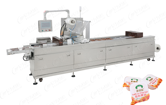 黃油真空包裝機是利用可拉伸和熱塑的薄膜或片材作為原料來制造容器,在裝填物料后再以薄膜或片材覆蓋進行抽真空和氣調(diào)密封的包裝設(shè)備。